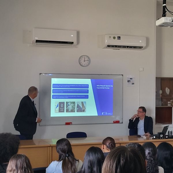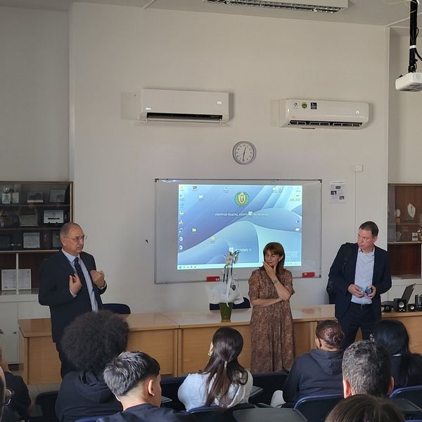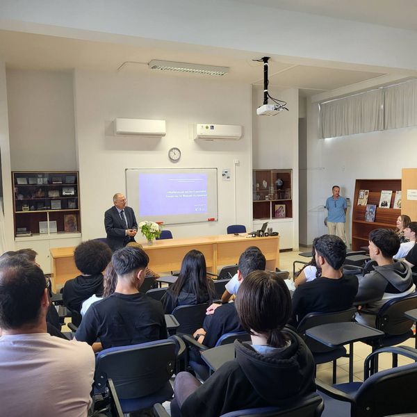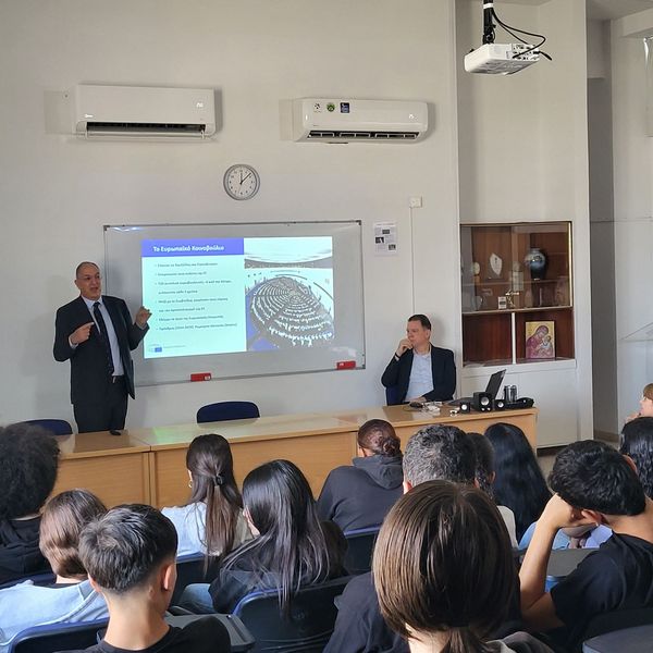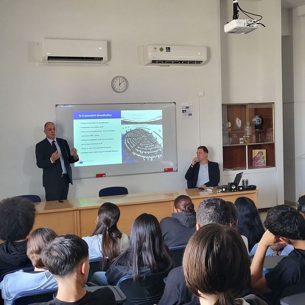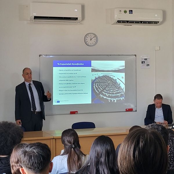 Ο Επίτροπος Αλίειας και Ωκεανών, Κ. Κώστας Καδής, επισκέφθηκε το σχολείο μας στις 30/10 και μας ανέπτυξε τη λειτουργία και την αξία της Ευρωπαïκής Ένωσης. Αρχικά, μας εξήγησε τι προσφέρει η Ε.Ε. στους πολίτες της, όπως οι ευκαιρίες εκπαίδευσης μέσω προγραμμάτων (Erasmus+), η συνεργασία των κρατών μελών, η διασφάλιση της ειρήνης. Στη συνέχεια, ανέλυσε τον ρόλο των βασικών θεσμών της Ε.Ε., όπως το Ευρωπαϊκό Κοινοβούλιο, το Ευρωπαϊκό Συμβούλιο και η Ευρωπαϊκή Επιτροπή, τονίζοντας τη σημασία τους στη λήψη αποφάσεων και στη διαμόρφωση πολιτικών που επηρεάζουν την καθημερινότητα των Ευρωπαίων πολιτών. Επιπλέον, αναφέρθηκε στη δική του αρμοδιότητα, δηλαδή στον τομέα της Αλίειας και των Ωκεανών, υπογραμμίζοντας την ανάγκη προστασίας του θαλάσσιου περιβάλλοντος και της βιώσιμης ανάπτυξης, καθώς και τη σημασία της γαλάζιας οικονομίας.